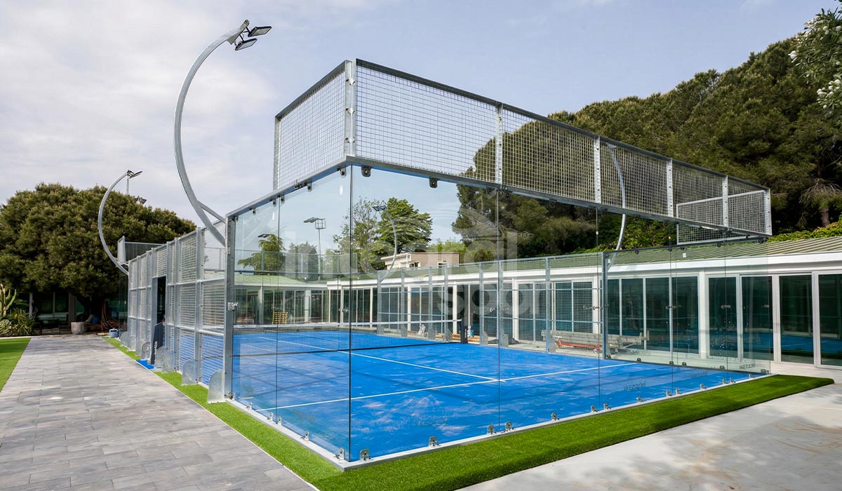 360° panoramik cam tasarımı sayesinde saha içerisinde kesintisiz görüş sağlanırken, temperli cam paneller ve galvanizli çelik konstrüksiyon yapıya dayanıklılık ve uzun ömür kazandırmıştır. Kort yüzeyinde kullanılan profesyonel padel çimi, optimum top sekmesi ve oyuncu konforu sunarak dört mevsim kullanım imkanı sağlamaktadır.
